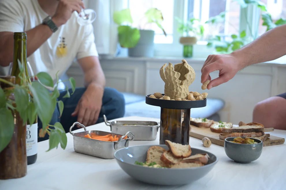 Il cache une petite poubelle discrète pour les coquilles de cacahuètes, et transforme vos apéros en moments aussi stylés que bien rangés.